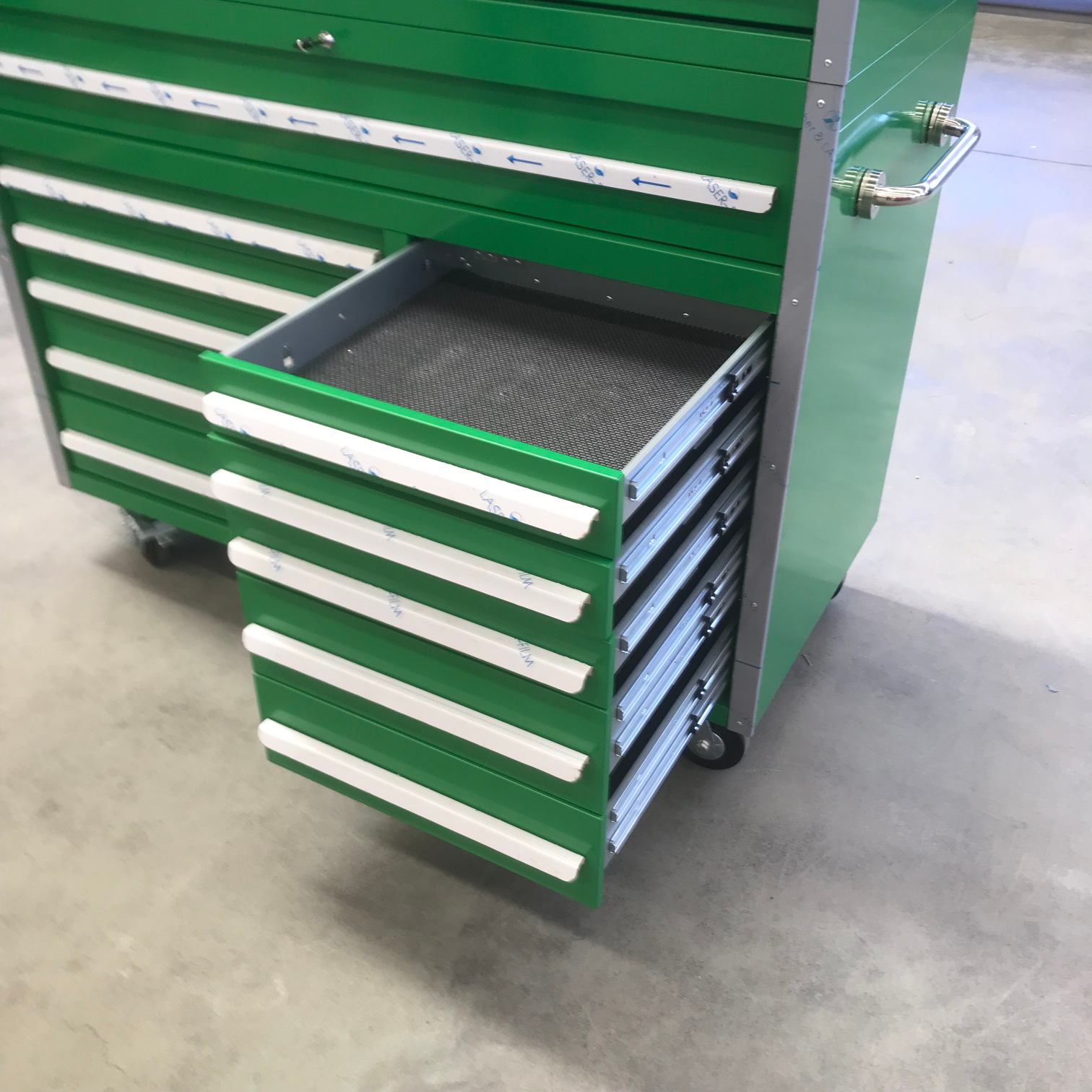 Kabinet panyimpenan rolled Rolled Rolled Rolled Rolley bisa ngatur alat ndandani otomotif ing toko ndandani otomotif. Ruang internal laci gedhe lan tarikake tingkat sing akeh otomotif gedhe.