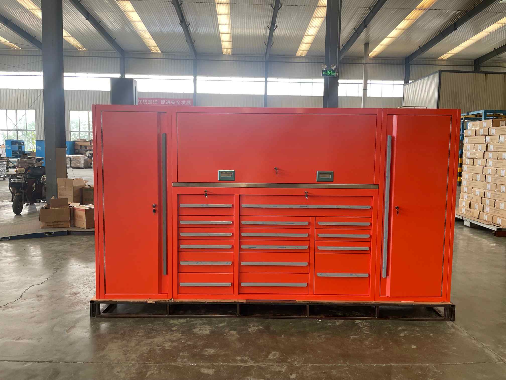 Kabinet alat baja Cyby kadhemen digulung yaiku kabinèt alat sing paling gedhe. Nduwe tampilan profesional, permukaan sing lancar, lan dilengkapi karo casters lan kunci safety sing abot. Iki diselehake ing lingkungan bengkel.