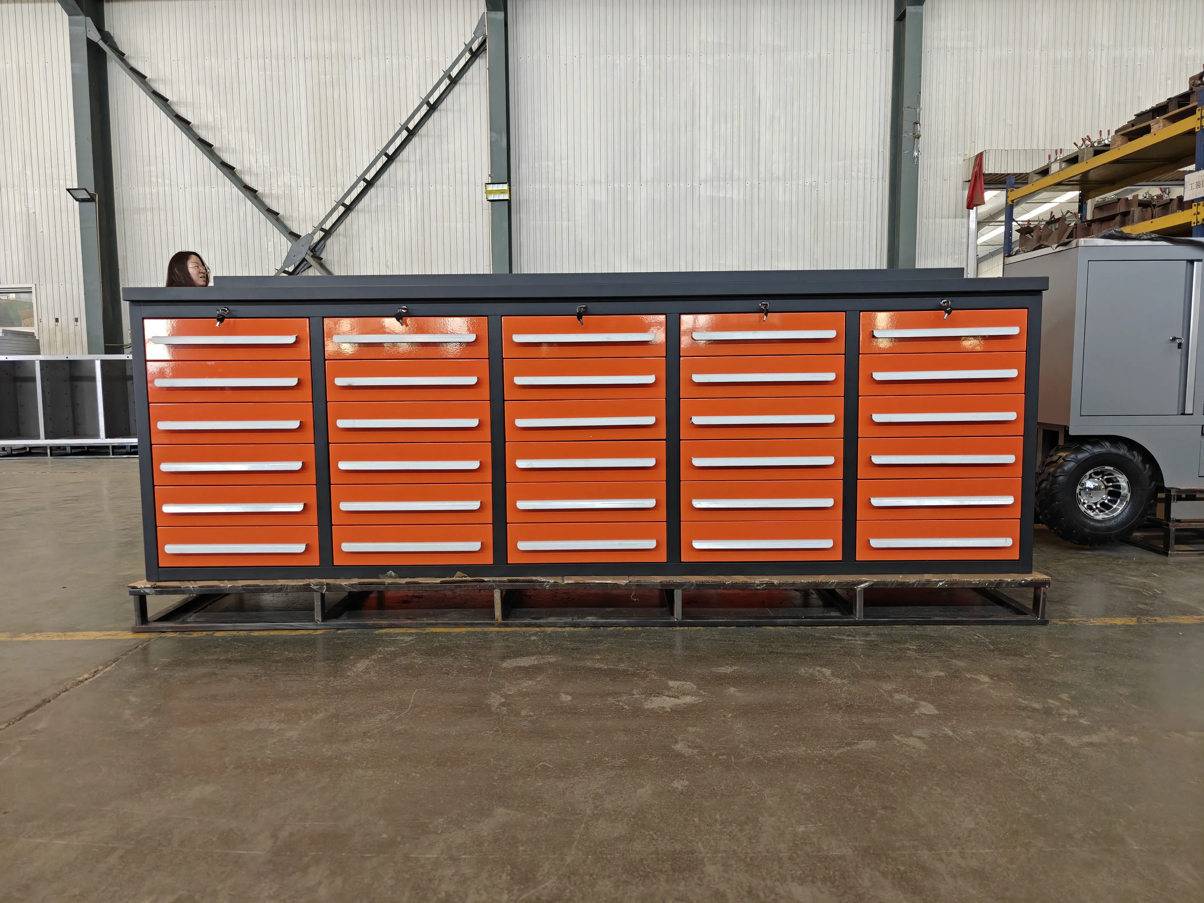 Sistem Ngunci Pusat: Kunci kabeh laci kanthi tombol siji kanggo njamin keamanan alat lan barang berharga.
