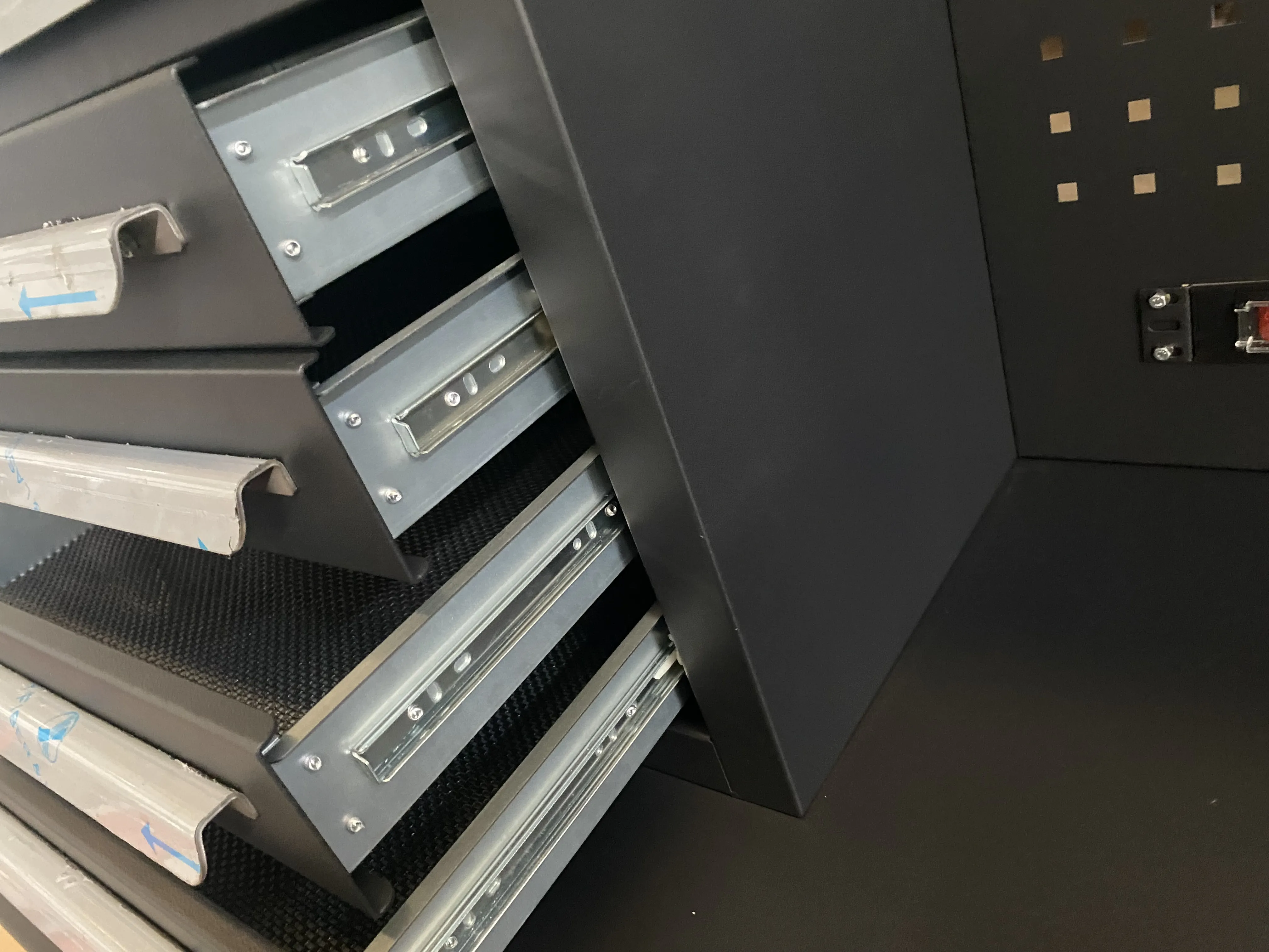 Kabinet alat CyJy duwe proses kayata nglereni, mbengkongake, lan welding. Desain struktural kekuatan dhuwur lan tekanan perawatan bubar lapisan bubuk bisa gampang adaptasi karo lingkungan sing digunakake kanthi kompleks kayata parkir, pawon, lan garasi.