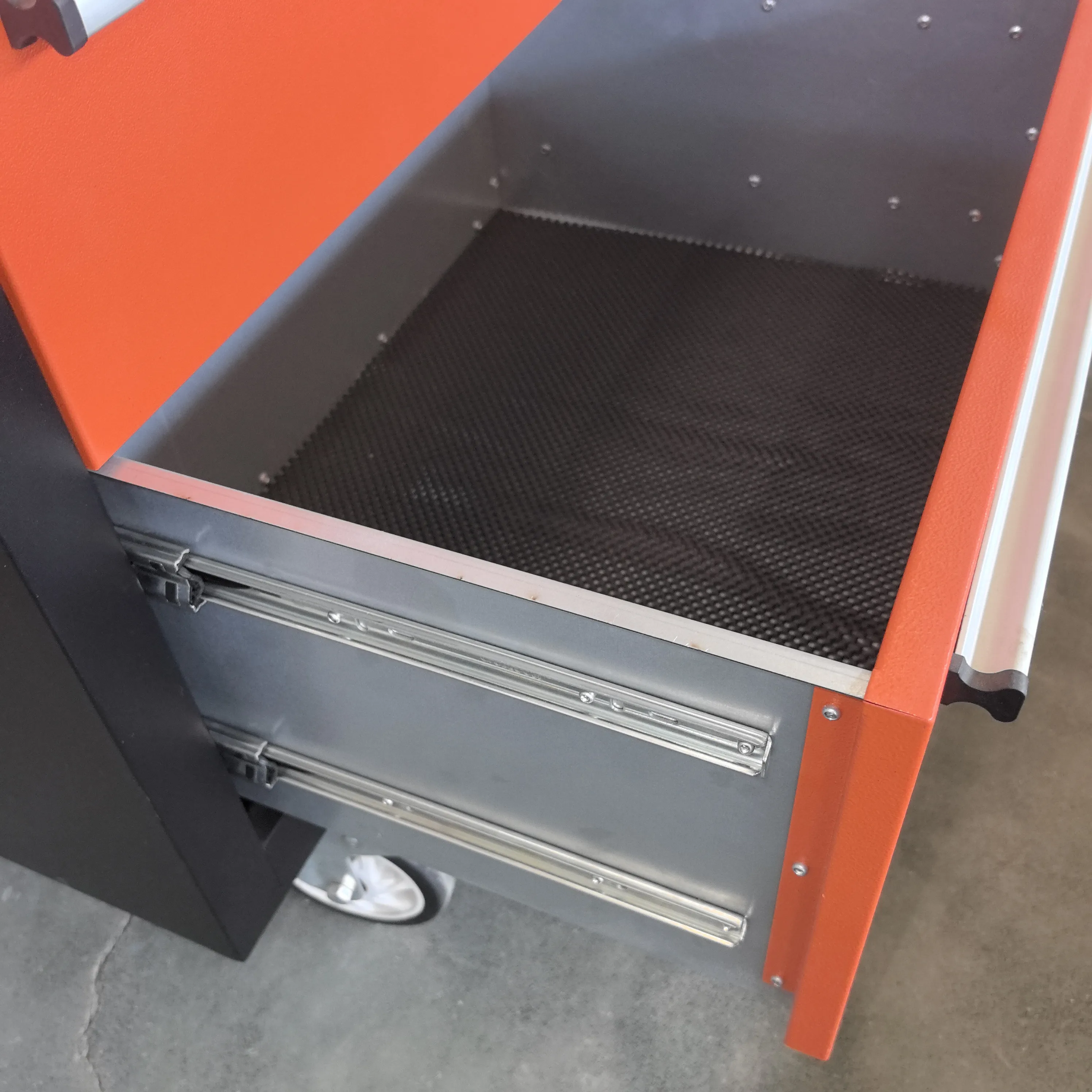 Kabinet panyimpenan alat bisa dadi laci sing disesuaikan kanthi pilihan tata letak pirang-pirang, laci laci lemak kanthi kemampuan ekstensi lengkap lan liner liner sing disesuaikan kanthi potongan sing bisa disesuaikan.